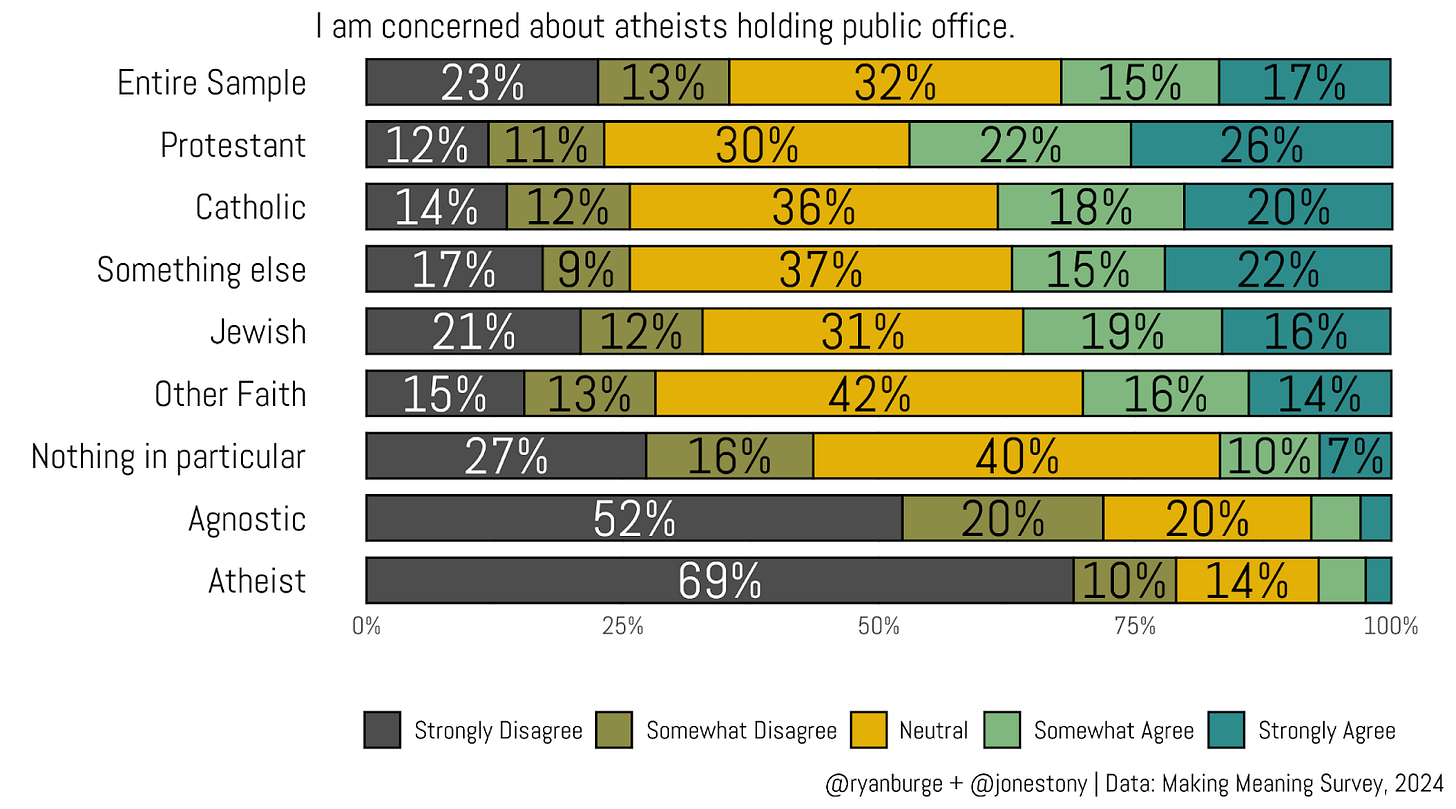 Then we tried to flip this whole concept on its head and included a statement that went the other way: “I am concerned about atheists holding public office.”