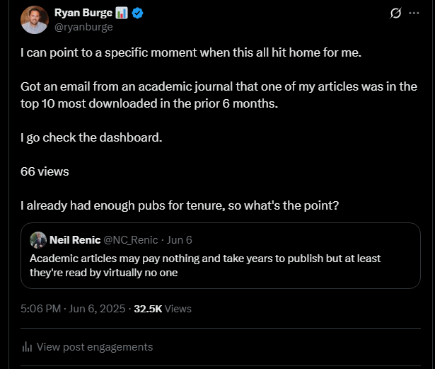 I started working at Eastern Illinois University back in August of 2012. It was a year to year gig. No real job stability. I actually was laid off from EIU twice during my first couple of years there. But I stuck around, managed to put together a respectable research profile, and got offered a position on the tenure track in 2019. Signing that tenure paperwork felt surreal. I remember thinking, “Given the permanent nature of tenure and the state of Illinois’ pension system, this one signature will provide me a monthly paycheck for the rest of my life.” For a kid who grew up with quite a bit of economic uncertainty, it was an odd feeling.