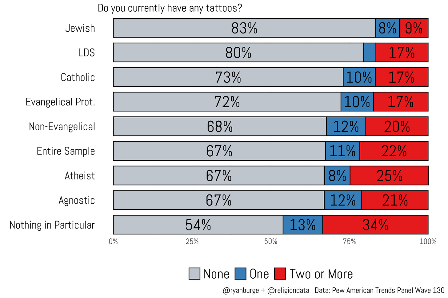 Which Religious Groups Are Most—and Least—Likely to Get Tattoos?