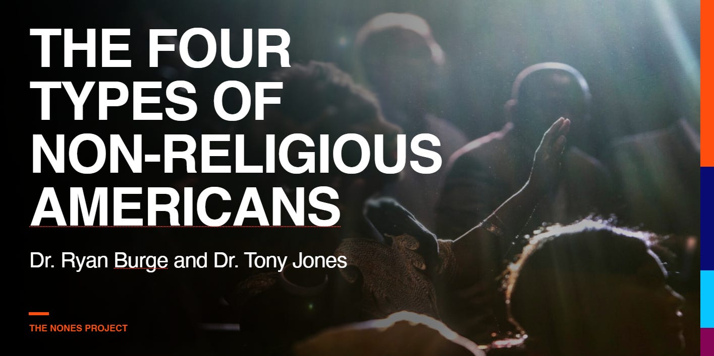 Tony Jones and I are neck deep in data thanks to a Templeton Grant entitled, Making Meaning in a Post-Religious America. We fielded two surveys of the nones (with the first being over 12,000 atheists, agnostics, and nothing in particulars). As a result of all that good data, we have created a new typology of the nones that I think you all will find both interesting and helpful. We are working on that book project right now and hope for publication in late 2026.
